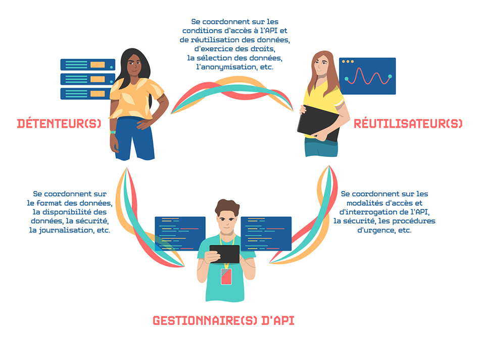Toutes les catégories d’API sont visées par la recommandation dès lors qu’elles sont utilisées par des organismes pour le partage de données personnelles. Trois rôles techniques sont introduits par la recommandation :