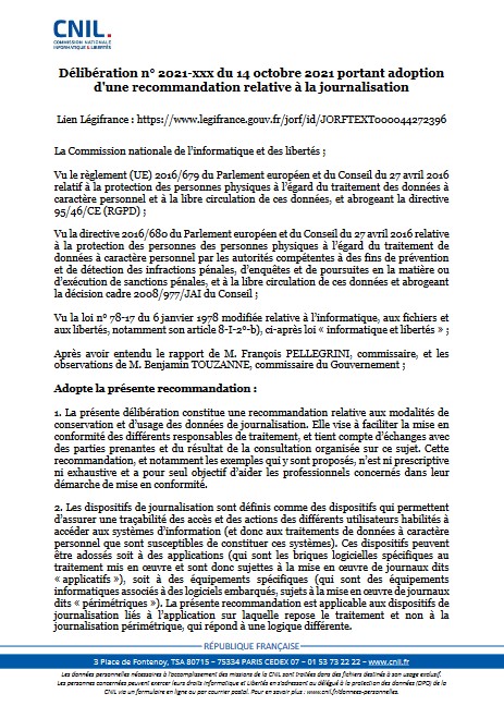 Les recommandations de la CNIL, non prescriptives, ont un rôle de guide pratique ayant pour objectif d'éclairer les acteurs concernés sur les règles applicables.