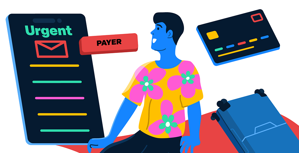La veille du départ, chacun d’eux reçoit un courriel émanant de l’hôtel, envoyé par le biais de la plateforme de réservation. Ce message leur indique que leur réservation doit être confirmée dans les prochaines heures, sans quoi cette dernière sera annulée et leur chambre réallouée. Le paiement préalablement effectué n’a pas pu passer et il leur est donc demandé de refournir leurs données bancaires, soit par réponse directe au courriel, soit depuis l’interface de paiement dédiée accessible depuis le lien présent dans le courriel.