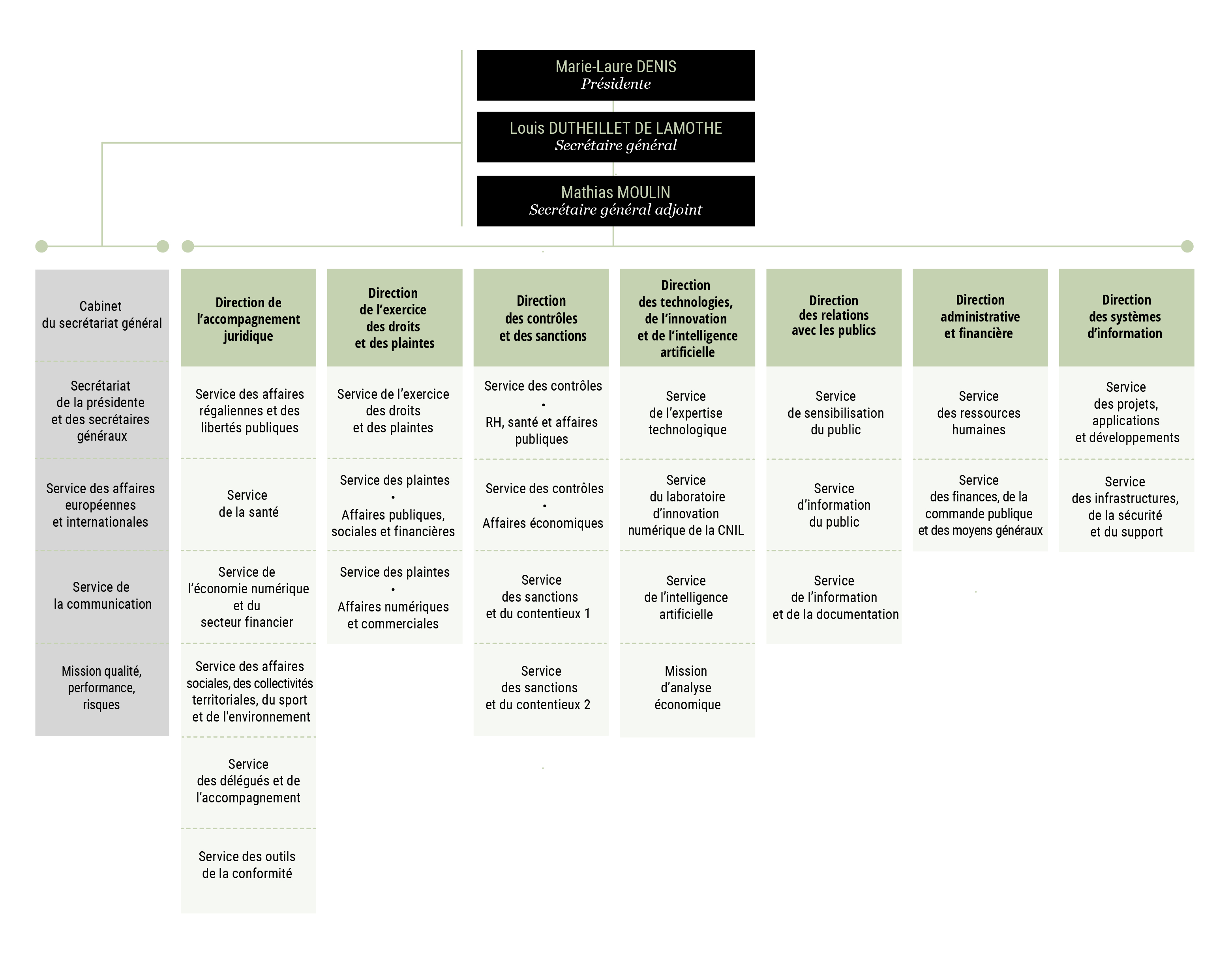 Les agents de la CNIL sont des agents contractuels de l’État. Les services de la CNIL s’organisent autour de 5 directions.