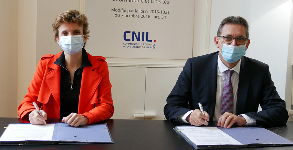 Afin d’accompagner les TPE et PME dans leur mise en conformité, Marie-Laure Denis, présidente de la CNIL et Charles-René Tandé, président du Conseil supérieur de l’ordre des experts-comptables, signent une convention de partenariat pour trois ans.