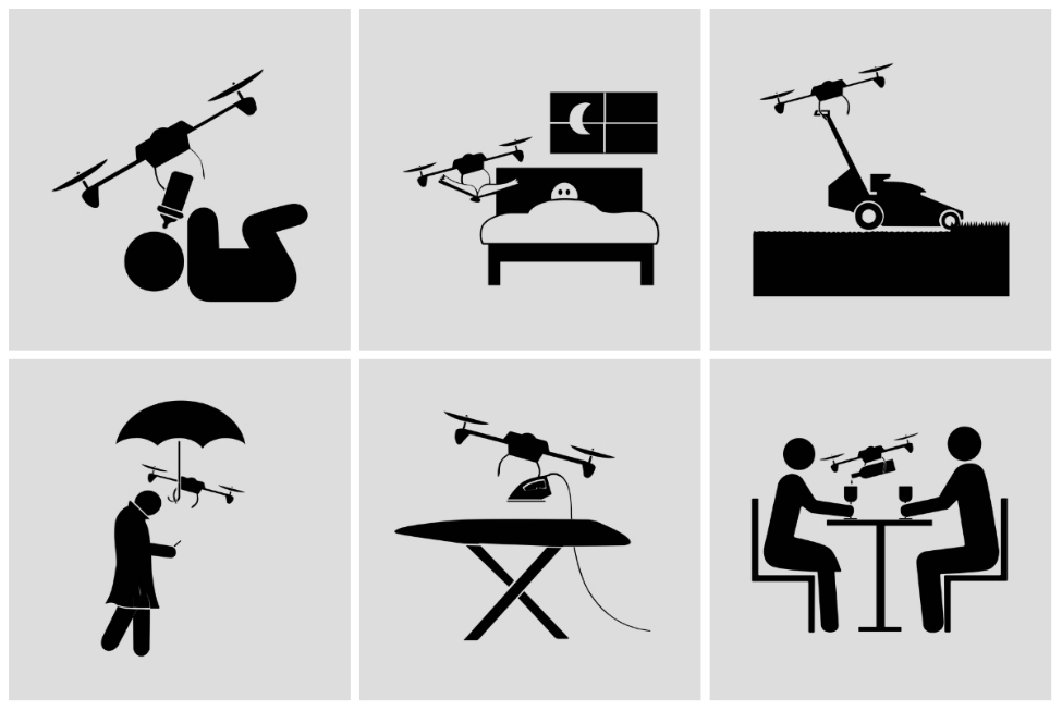 Des dizaines de scénarios ou de prototypes imaginent à quoi vont servir les drones demain : drones défibrillateurs, drones de livraison, drones de surveillance, drones accompagnant les enfants à l'école, drones bâtisseurs, drones agricoles, drones de diagnostic énergétique, drones poisson-pilote des véhicules autonomes, ... L'imagination en ce domaine n'a pas de limites. Ils sont en réalité potentiellement utilisables partout, dans beaucoup de domaines différents, à la fois pour disposer de capteurs mobiles et pour des raisons logistiques.