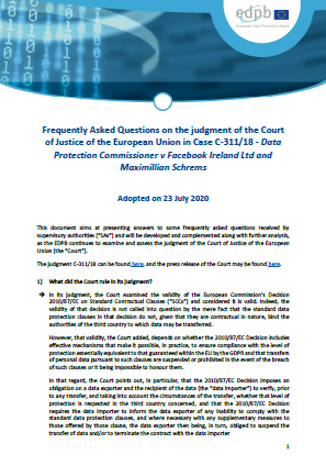FAQ - Invalidation du Privacy Shield - CEPD (en anglais)