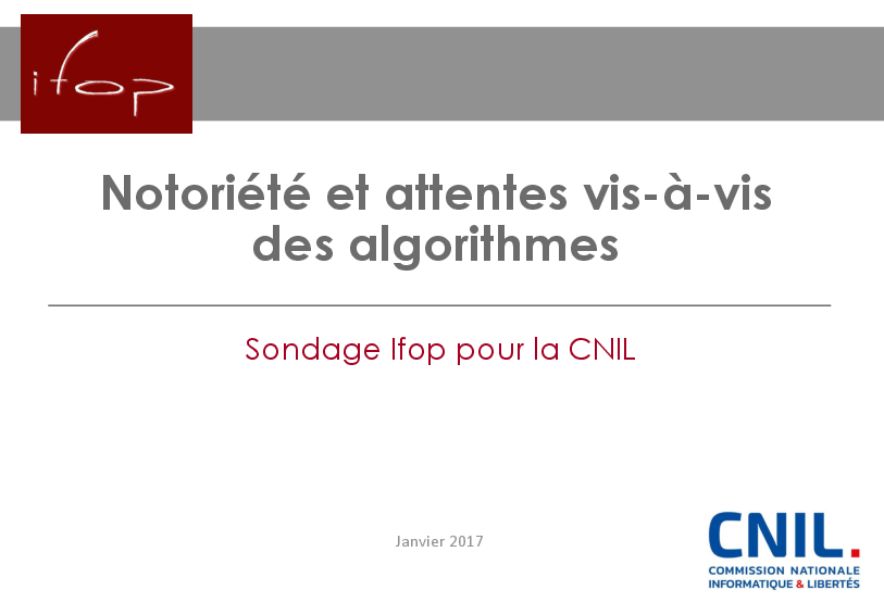 Notoriété et attentes vis-à-vis des algorithmes - Sondage IFOP pour la CNIL