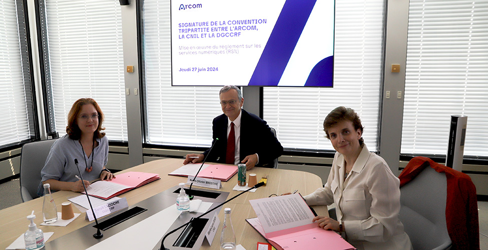 Mise en œuvre du règlement européen sur les services numériques : l’Arcom, la CNIL et la DGCCRF signent une convention de coopération