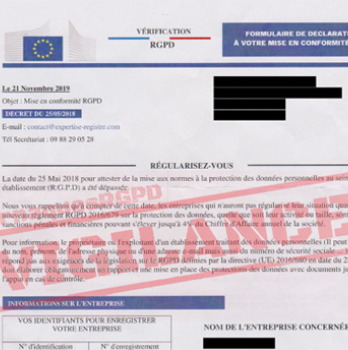 Des sociétés profitent de l’entrée en vigueur de ce règlement pour opérer du démarchage auprès des professionnels (entreprises, administrations, associations), parfois de manière agressive, afin de vendre un service d’assistance à la mise en conformité au RGPD.