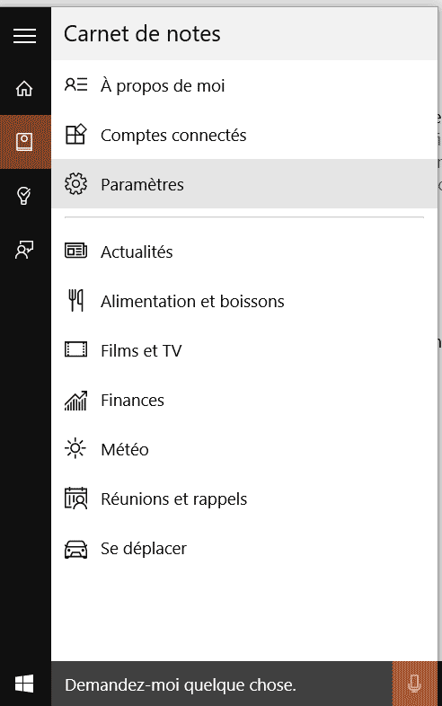 Notez par ailleurs que certaines de ces données - Microphone, Calendrier, messagerie, localisation,... - sont nécessaires pour que l'assistante personnelle Cortana puisse fonctionner. Si vous les désactivez, Cortana vous demandera de les réactiver lors de sa prochaine utilisation.