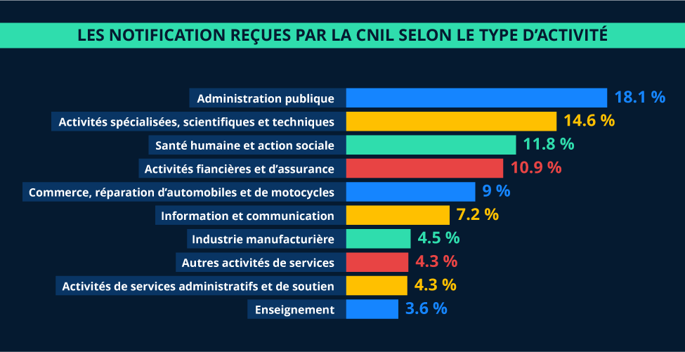 Le secteur privé est à l'origine d’environ deux tiers des déclarations de violations à la CNIL dont 39 % de PME. Le secteur public représente quant à lui 22 % des notifications.